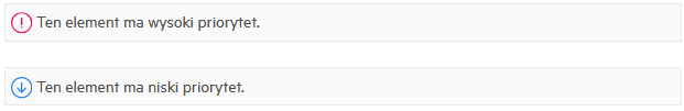 Ustawieniem domyślnym podczas tworzenia i wysyłania przesyłek dowolnego typu w programie GroupWise Web jest Standard. Przesyłki wysyłane z priorytetem standardowym nie mają żadnego wyróżnika graficznego. Jednak po zmianie priorytetu na Wysoki lub Niski ikona przesyłki pocztowej zmienia się, wskazując odpowiedni priorytet. Także podczas wyświetlania przesyłek o jednym z tych priorytetów po ich otwarciu lub w okienku podglądu w górnej części obszaru wiadomości wyświetlany jest odpowiedni transparent (patrz poniżej).