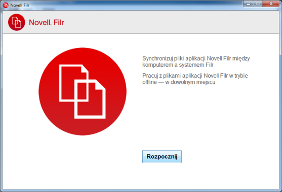 Kliknij przycisk Start, aby rozpocząć konfigurowanie aplikacji klienckiej Filr.