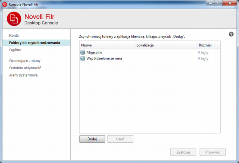 Domyślnie pliki systemu Filr są synchronizowane z folderem c:\Użytkownicy\nazwa_użytkownika\Filr w systemie plików.