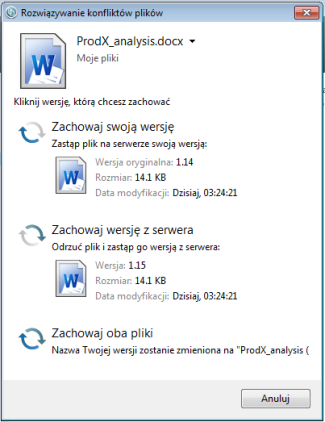 Jeśli dokument jest edytowany jednocześnie w różnych lokalizacjach, mogą wystąpić konflikty.