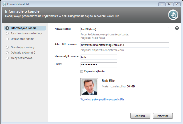 14.0 Zmienianie informacji o koncie Filr dla aplikacji klienckiej Filr