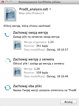 Jeśli dokument jest edytowany jednocześnie w różnych lokalizacjach, mogą wystąpić konflikty.
