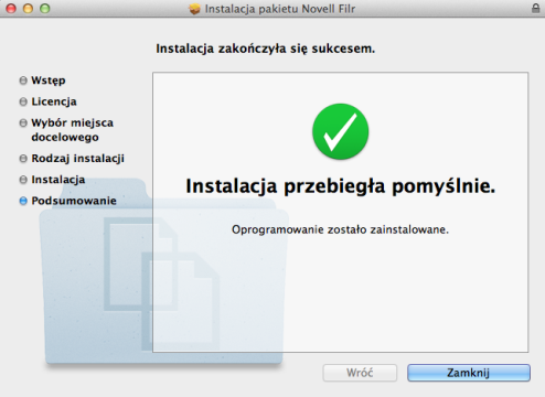Gdy pobieranie dobiegnie końca, otwórz plik NovellFilr-wersja.pkg.