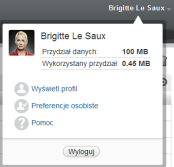 Jeśli ta opcja nie jest widoczna, administrator systemu Filr nie wprowadził ograniczenia w postaci przydziału danych.