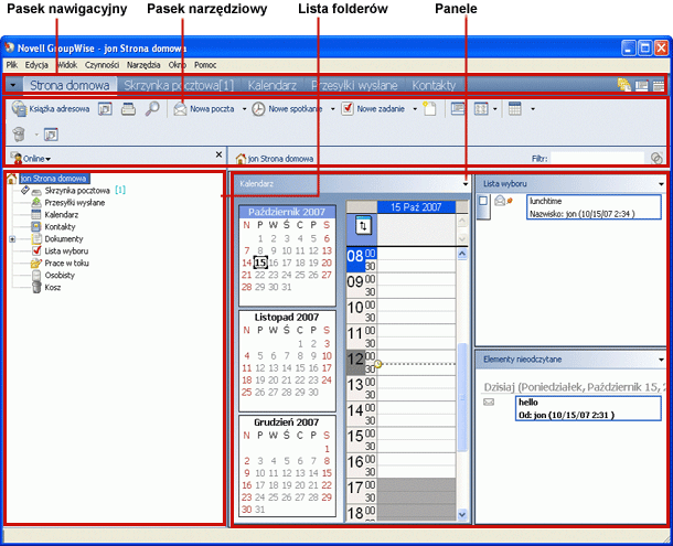 Figura 1-1 Obszar roboczy w programie GroupWise