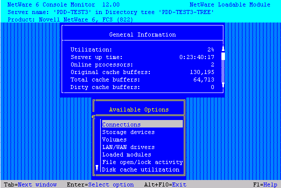 HINT: For explanations of options on MONITOR menus as well as lists and statistics, you can press press F1 to access MONITOR's online help when you are running MONITOR at the server console.