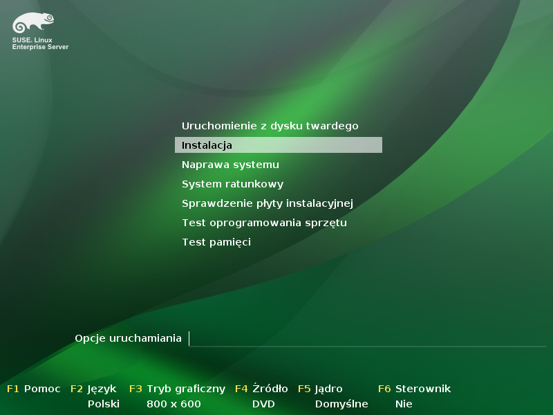 Proszę wybrać polecenie z menu rozruchowego i nacisnąć klawisz Enter. Spowoduje to wczytanie programu instalacyjnego systemu i rozpoczęcie instalacji w trybie normalnym.