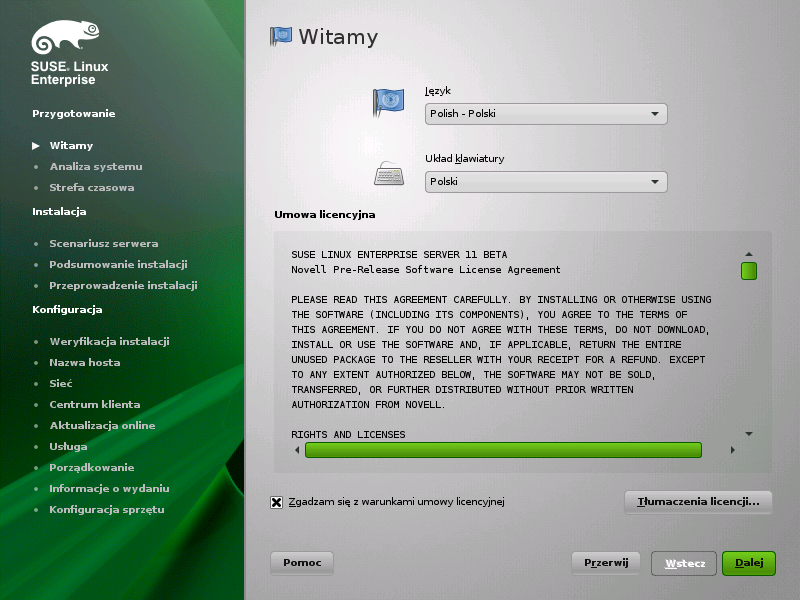 Proszę przeczytać umowę licencyjną i zaznaczyć pole wyboru . Proszę kliknąć przycisk , aby kontynuować.