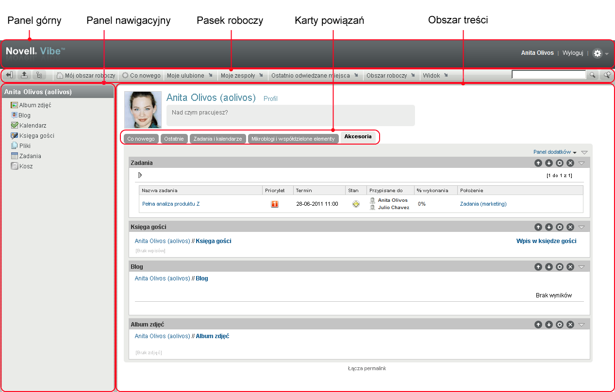 2.0 Poznawanie interfejsu i funkcji systemu Novell Vibe