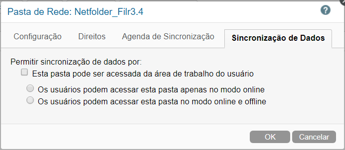 Na guia Sincronização de dados, anule a seleção da opção Esta pasta pode ser acessada do desktop do usuário.
