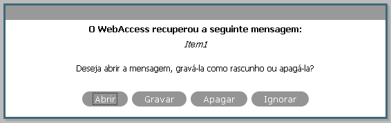 Quando você iniciar o WebAccess e apenas uma mensagem gravada automaticamente for recuperada, aparecerá a seguinte mensagem: