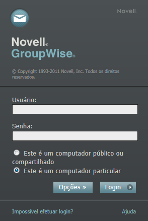 Na página de login do GroupWise WebAccess, digite seu nome de usuário e sua senha.