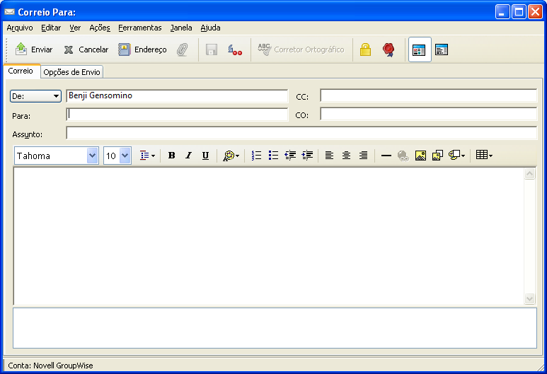 Ao compor uma mensagem no GroupWise, você tem a opção de usar o GroupWise, o OpenOffice.org ou o Microsoft Word como editor. Se você usar o OpenOffice.org ou o Word como editor, a funcionalidade e a formatação do aplicativo estarão disponíveis na janela de edição do GroupWise.
