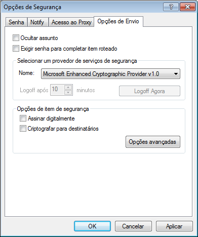 Enviar a parte da mensagem no formato de texto sem criptografia (assinatura não-criptografada): Envia a mensagem em texto sem criptografia; caso contrário, ela será enviada como uma mensagem codificada em PKCS7.