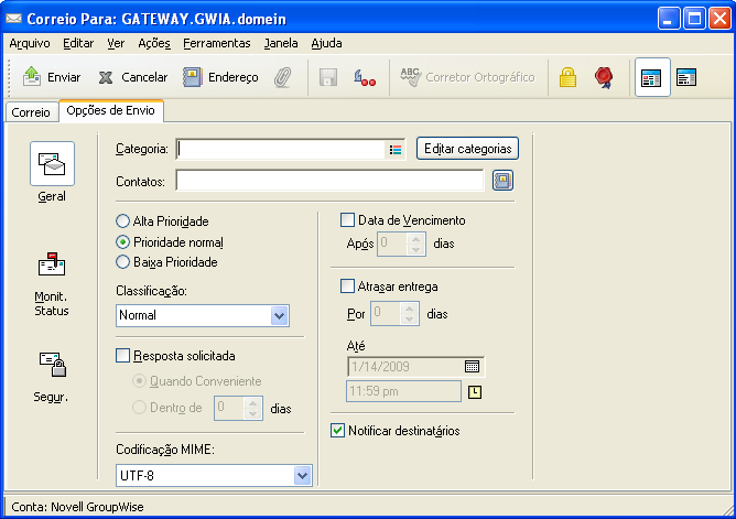Se você estiver enviando mensagens para sistemas não-GroupWise, lembre-se que esses sistemas precisam ter um recurso de monitoramento de status para retornar o status da mensagem enviada para o seu sistema GroupWise.