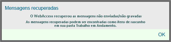Quando você iniciar o WebAccess e apenas uma mensagem gravada automaticamente for recuperada, aparecerá a seguinte mensagem: