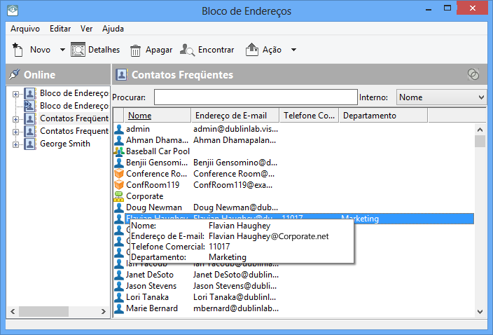 Agora, você pode usar o bloco de endereços compartilhado para endereçar itens ou procurar informações sobre usuários exatamente como faz em outros blocos de endereços.