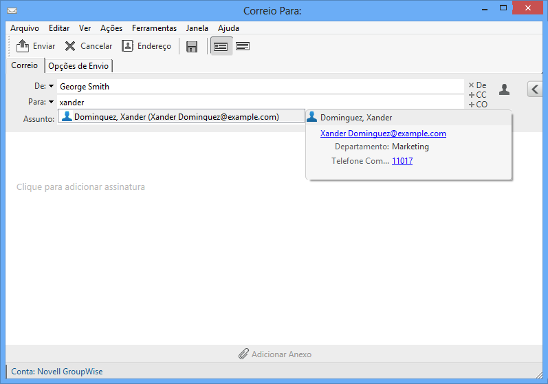 NOTA:Não é possível importar endereços para o Bloco de Endereços do GroupWise.