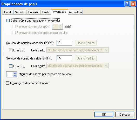 Se você marcar Deixar cópia das mensagens no servidor e Remover do servidor após apagar do Lixo, os itens POP3 serão apagados do servidor POP3 quando você eliminá-los manualmente do Lixo. Se o GroupWise esvaziar automaticamente o Lixo, os itens não serão apagados do servidor POP3.