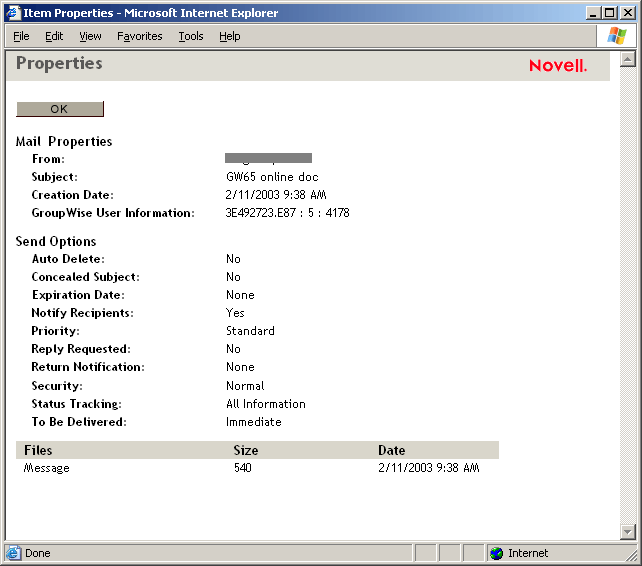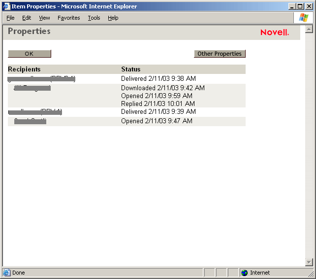 Após enviar um item, você pode verificar seu status para saber se foi entregue, lido, apagado etc. Você também pode recolher uma mensagem, desde que não tenha sido aberta. Além disso, você pode mover itens para pastas diferentes, mantendo organizada a Caixa de Correio do GroupWise.