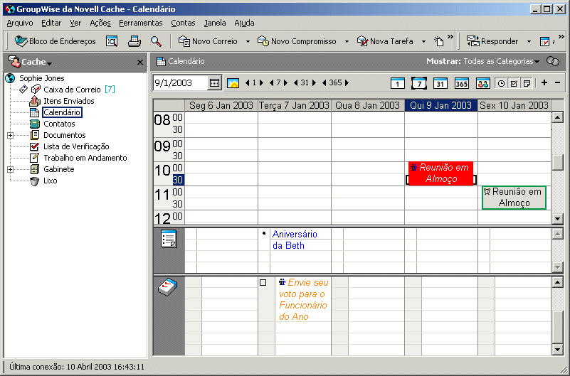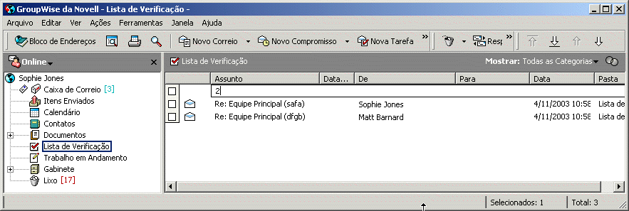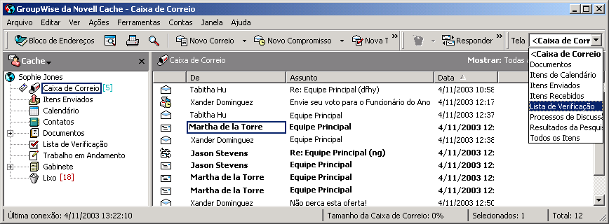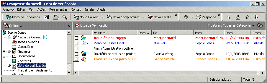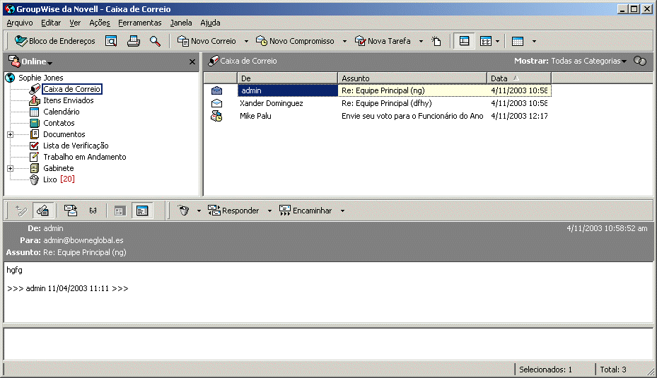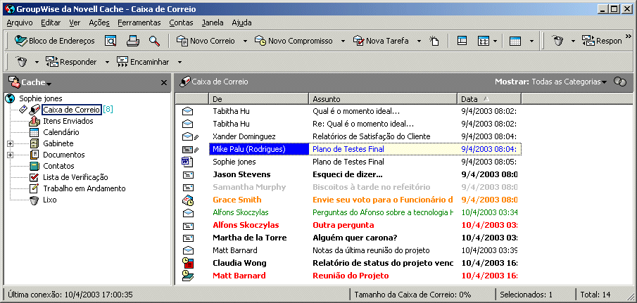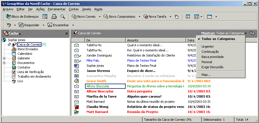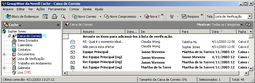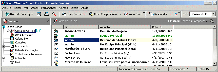 O GroupWise armazena na Caixa de Correio as mensagens de correio, os compromissos e todos os outros itens que você recebe.