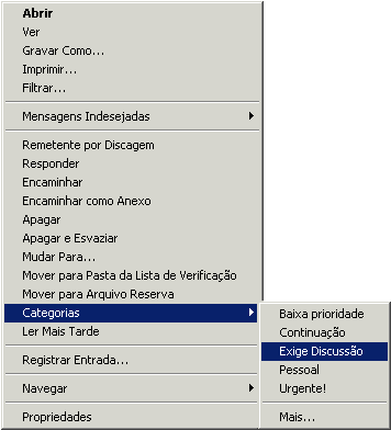 Clique o botão direito do mouse em um item na Caixa de Correio ou no Calendário e, em seguida, clique na categoria.