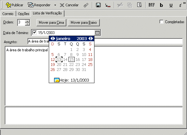 Na Caixa de Correio, você pode ler itens, responder a itens e encaminhar itens recebidos. Para organizar os itens, designe a eles categorias ou crie uma lista de verificação. Você pode delegar tarefas e compromissos a outros usuários. Você também pode administrar e-mails indesejados da Internet com Gerenciamento de Mensagens Indesejadas. Você pode até mesmo mudar um item, como uma mensagem de correio, para outro tipo de item, como um compromisso.