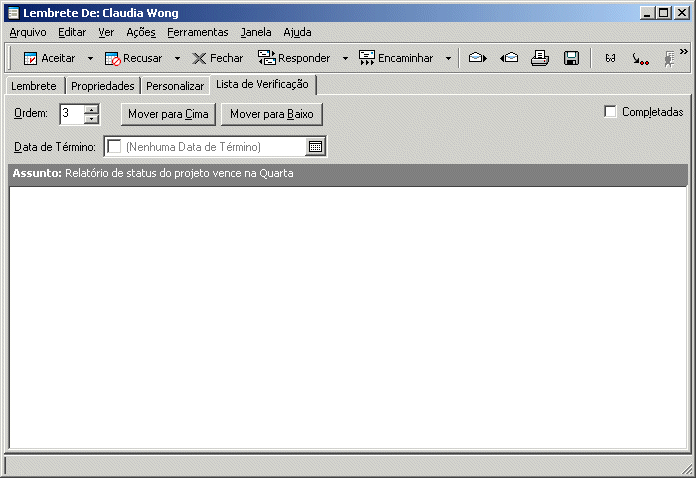 Se você não puder aceitar um compromisso, uma tarefa ou um lembrete, delegue o item em vez de encaminhá-lo. A delegação coloca o status Delegado na janela Propriedades do item, informando ao remetente que você transferiu a responsabilidade pelo item para outra pessoa.