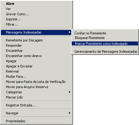 Selecione Marcar como Indesejados os E-Mails deste Endereço ou Bloquear E-Mails deste Endereço.