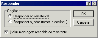 Para incluir o texto da mensagem na sua resposta, selecione Incluir Mensagem Recebida do Remetente.