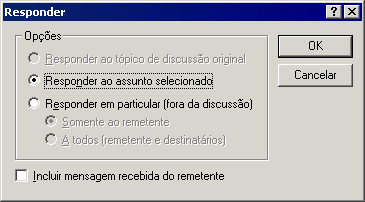 Se você responder somente para a pessoa que escreveu o item, sua resposta não será publicada na pasta compartilhada.