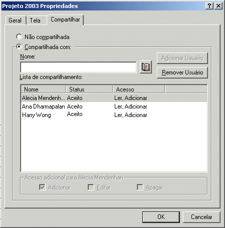 Quando o nome do usuário aparecer na caixa, clique em Adicionar Usuário para movê-lo para a Lista de Compartilhamento.