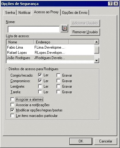 Se o usuário ainda não tiver concedido a você direitos de proxy em sua Lista de Acesso, o nome será adicionado à Lista de Proxies, mas a Caixa de Correio do usuário não será aberta.