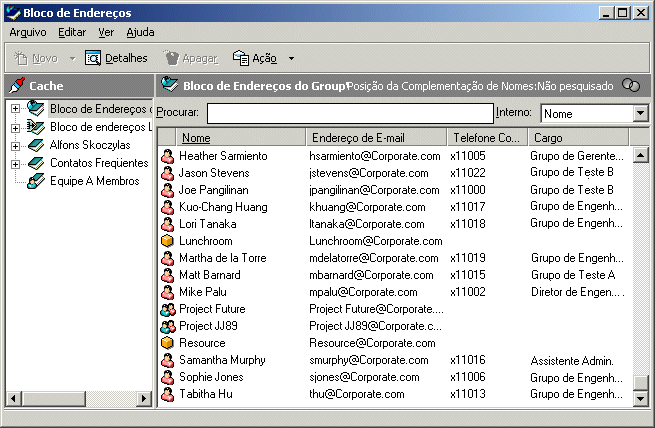 Use Correio para enviar itens de um bloco de endereços. Se você tiver aberto o Bloco de Endereços na Janela Principal, o Bloco de Endereços e o GroupWise não estarão conectados. A opção Correio permite abrir uma tela de item do Bloco de Endereços.