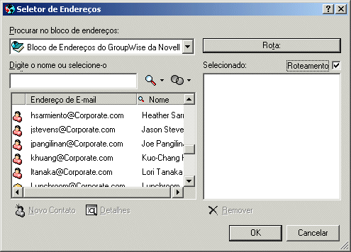 Clique em Endereço na barra de ferramentas para selecionar usuários na caixa de diálogo Seletor de Endereços.