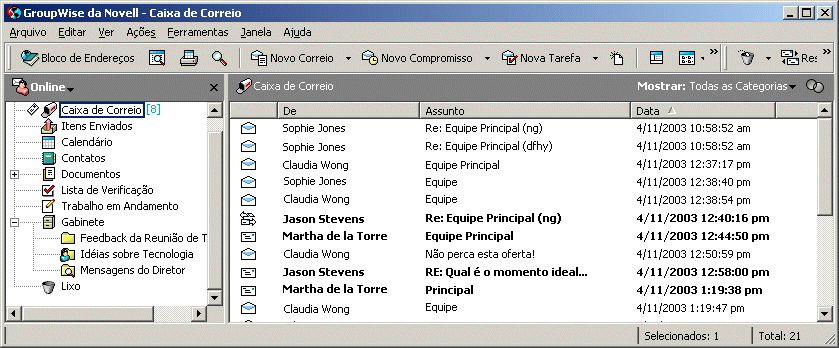 A pasta Documentos pode conter apenas documentos. Se qualquer outro tipo de item for movido para essa pasta por um cliente do GroupWise de uma versão anterior à versão 5.5 (por exemplo, de uma versão mais antiga do GroupWise Remoto), o item será apagado.