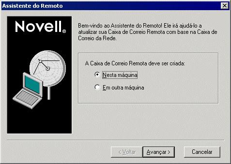 Para criar a Caixa de Correio Remota no laptop que está conectado com a rede que contém o sistema GroupWise Online, clique em Nesta Máquina e, em seguida, clique em Próximo.