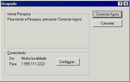 Ao clicar em Conectar Depois, você cria uma solicitação de pesquisa de horário disponível, mas não a envia ao sistema GroupWise master. Você pode gravar o compromisso como um item de rascunho na pasta Trabalho em Andamento até que possa enviá-lo. Quando estiver pronto para verificar horários de compromissos mais tarde, clique em Ocupado e, em seguida, clique em Conectar Agora.