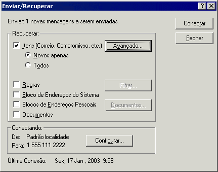 Enquanto seus itens são enviados, os novos itens são recuperados de acordo com as especificações feitas na caixa de diálogo Enviar/Recuperar.
