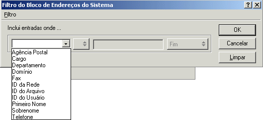 Para obter mais informações sobre como filtrar o Bloco de Endereços do sistema, consulte Filtrando o bloco de endereços do sistema da Caixa de Correio Remota .