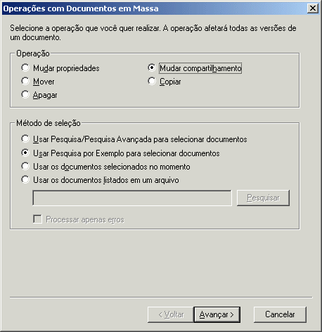 Quer seja um usuário responsável por vinte documentos ou um administrador de sistema responsável por milhares de documentos, você poderá usar o Assistente de Operações de Documentos em Massa para gerenciar com eficiência grupos de documentos. Usando o assistente, você pode executar todas as seguintes tarefas: