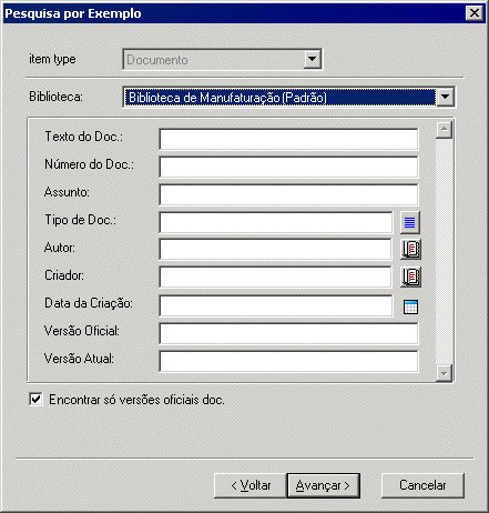 Na caixa de grupo Método de Seleção, clique em Usar Pesquisa por Exemplo para Selecionar Documentos e, em seguida, clique em Próximo.