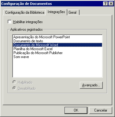Você pode desativar integrações de um ou de todos os seus aplicativos. Quando você desativa integrações, seus aplicativos funcionam como aplicativos não-integrados e o GroupWise não é capaz de monitorar quando você abre e grava documentos. Como conseqüência, os seus documentos retornam à biblioteca quando você fecha o aplicativo e não quando fecha o documento.