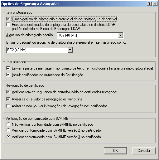 Os métodos de criptografia disponíveis dependem do provedor de serviços de segurança selecionado.