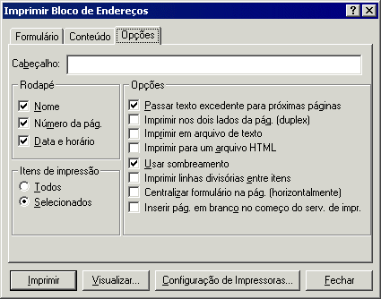 Não faça seleções caso você deseje imprimir o bloco de endereços inteiro.
