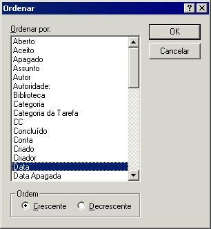 Clique na categoria pela qual os itens deverão ser ordenados na caixa de listagem.