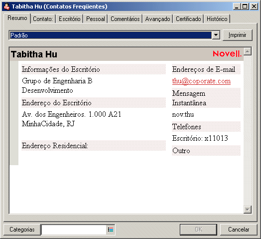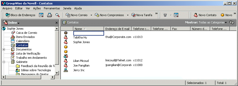 O Gerenciamento de Contatos do GroupWise permite que você acesse seus contatos, grupos, recursos e organizações a partir da