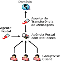 O POA (Post Office Agent, agente postal) do GroupWise entrega mensagens entre as caixas de correio dos usuários de uma agência postal e o MTA (Message Transfer Agent, agente de transferência de mensagens) do GroupWise roteia mensagens entre agências postais (se houver mais de uma agência postal no domínio) e entre domínios (se houver mais de um domínio no sistema).
