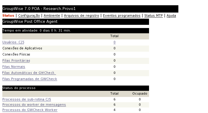 No console do servidor NetWare ou em um console remoto, você pode usar os consoles do servidor do agente descritos no GroupWise 7 Administration Guide (Guia de Administração do GroupWise 7).