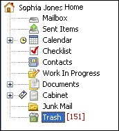 Figure 3-10 Lista de Pastas Completa mostrando a pasta Mensagens Indesejadas